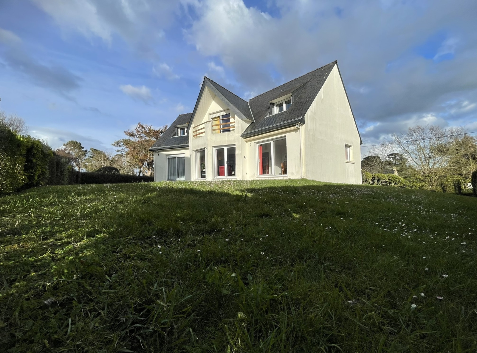 Dans un des quartiers les plus prisés de Concarneau cette maison de très bonne qualité ne vous laissera pas insensible. Profitant d'une vue mer, sur les Glénan et la pointe de Beg Meil, bâtie sur un beau terrain paysagé de près de 1000m², elle se caractérise par ses beaux volumes et sa luminosité traversante. Edifiée sur un sous-sol total de 100m² avec garage, atelier et cave, elle possède tous les critères de vie de nombreuses personnes. Au Rez-de-chaussée, une entrée spacieuse vous conduit vers une pièce de vie de plus de 50m² comprenant salon-séjour avec cheminée et cuisine ouverte aménagée et équipée. Un beau dégagement doté de nombreux placards vous emmène vers la chambre avec accès direct à la terrasse ainsi qu'une grande salle de bains et une pièce servant de cellier et de buanderie. Al'étage, la mezzanine vous offre un balcon avec une vue dégagée sur l'océan et l'accès à deux chambres spacieuses et une salle d'eau. Ce bien vous est présenté au prix de 726 000 € FAI ( 26 000€ charge acquéreurs ). DPE : en cours. Les informations sur les risques auxquels ce bien est exposé sont disponibles sur le site Géorisques : www. georisques.gouv. fr